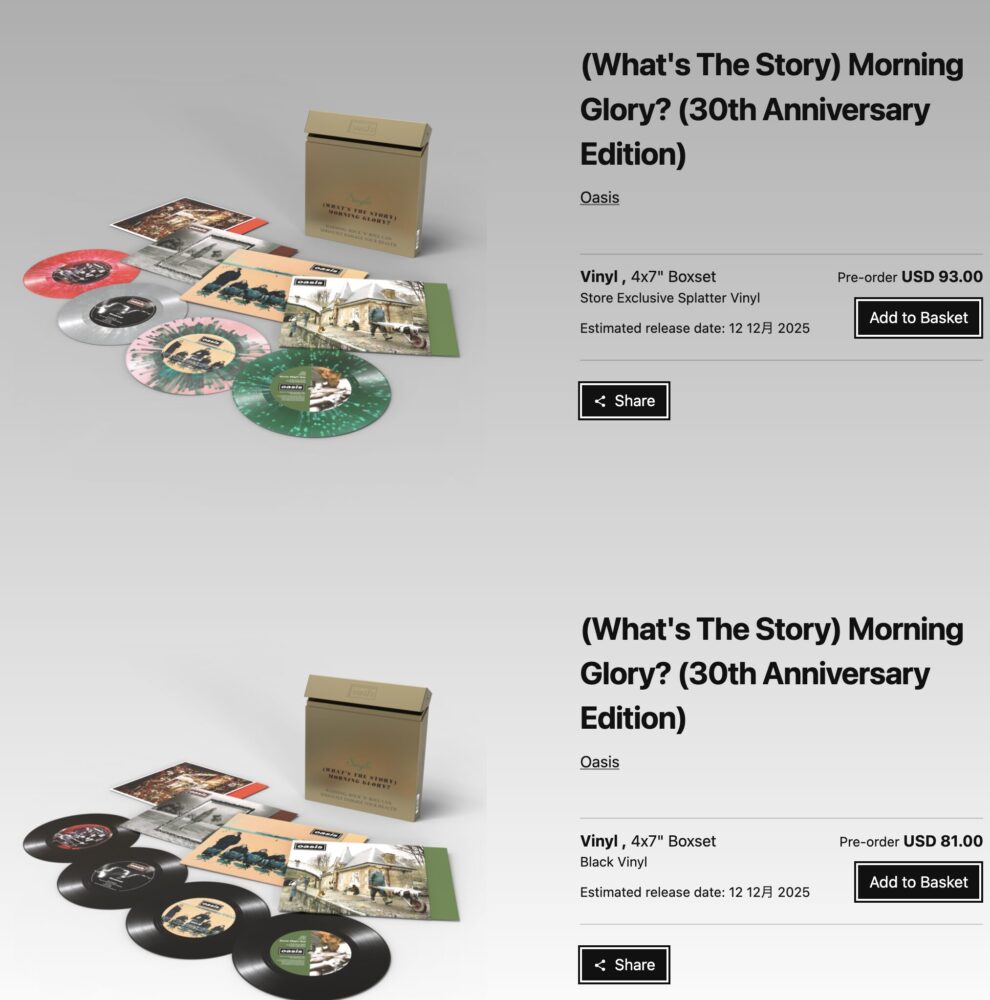 「Wonderwall」のリリース30周年という名目(やや強引な気もするが)で、『 (What’s the Story) Morning Glory?』からのシングルを7インチシングルのBOX仕様にしてリリースします。