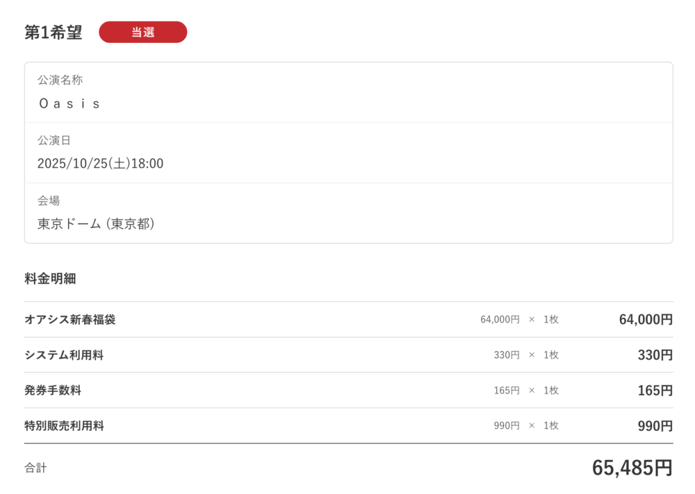 再来週のOasis東京ドームのチケット発券したんすけどVIPじゃないのにアリーナの最前列引き当てました