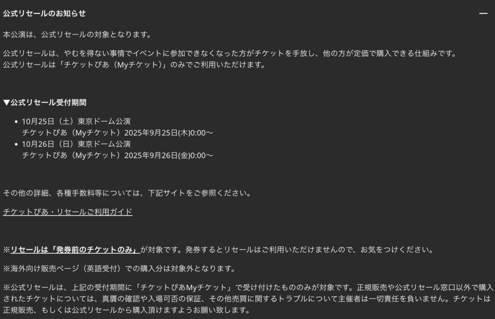 これを待ってる人も多いかと、チケットぴあ公式リセールだ。