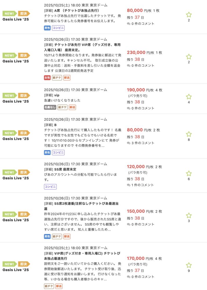 Oasis 10/25分のリセール情報ページURLですhttps://t.co/wGuNFSfkDR