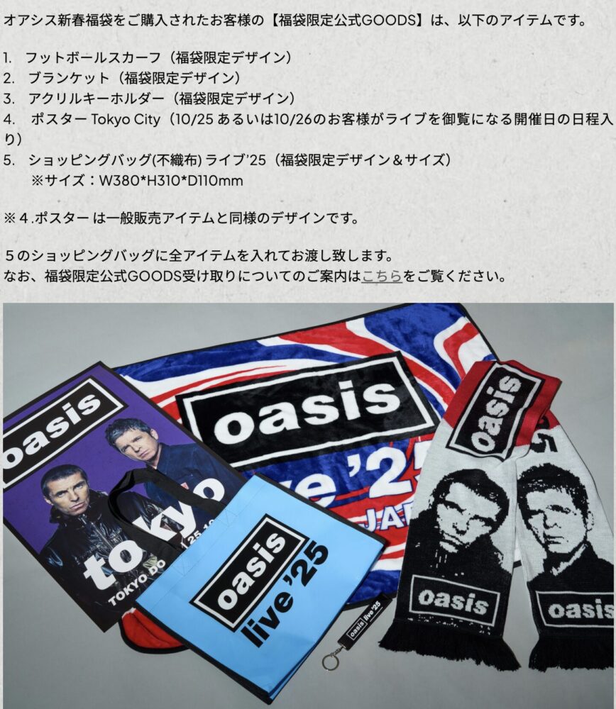 ノエル・ギャラガーモバイルより『オアシス新春福袋』なるものが発売され、なんとそこには東京ドーム公演SS席が封入されてるとの事。