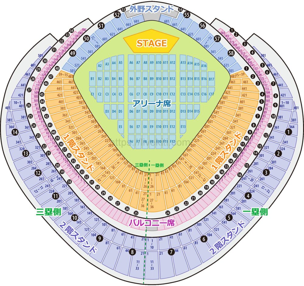 あと、参考として東京ドーム座席表(ライブ版)はコチラ。